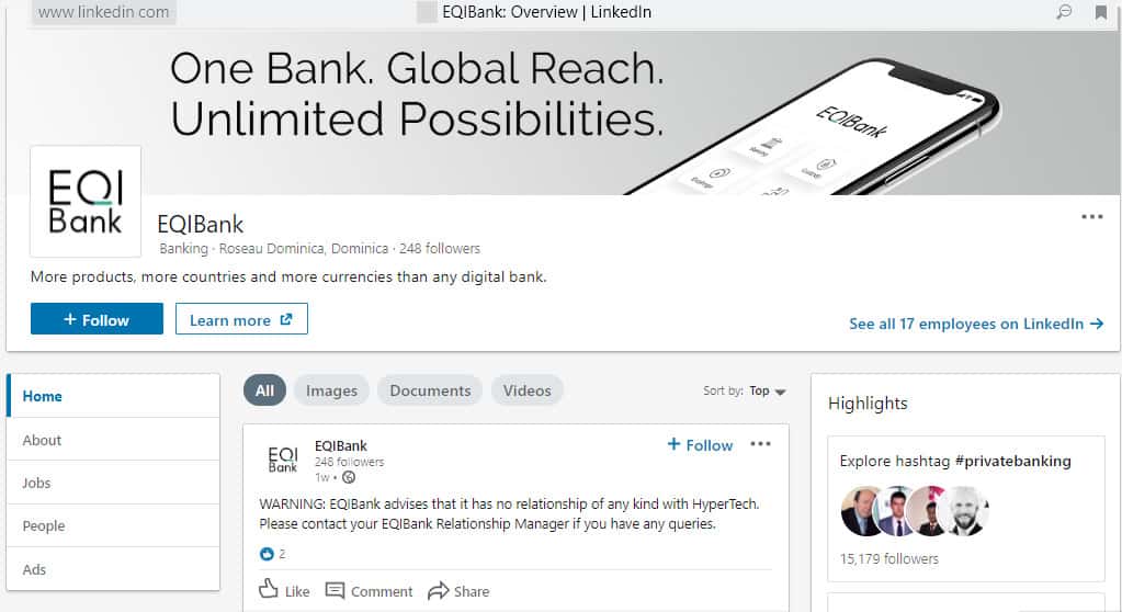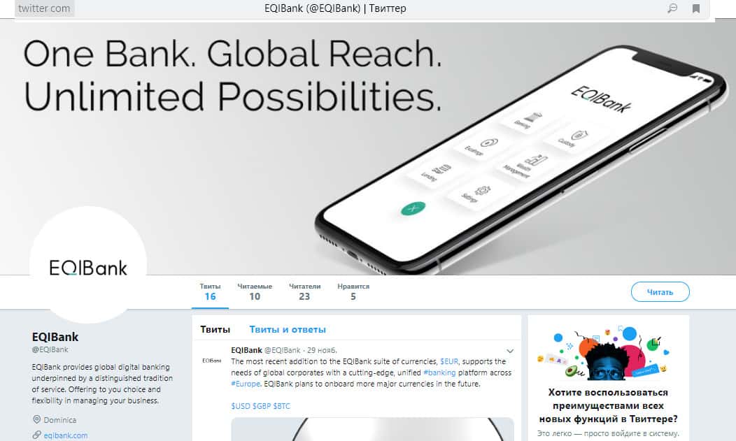 Имеются у жуликов Экюи Банк аккаунты в двух популярных социальных сетях – LinkedIn и Twitter. Они, как уже было сказано, очень хорошо помогают увеличивать лояльность пользователей и потенциальных клиентов. Кидалы EqiBank всеми способами пытаются отвести взгляд людей от реальной проблемы – Экюи Банк на деле не заслуживает вашего доверия.