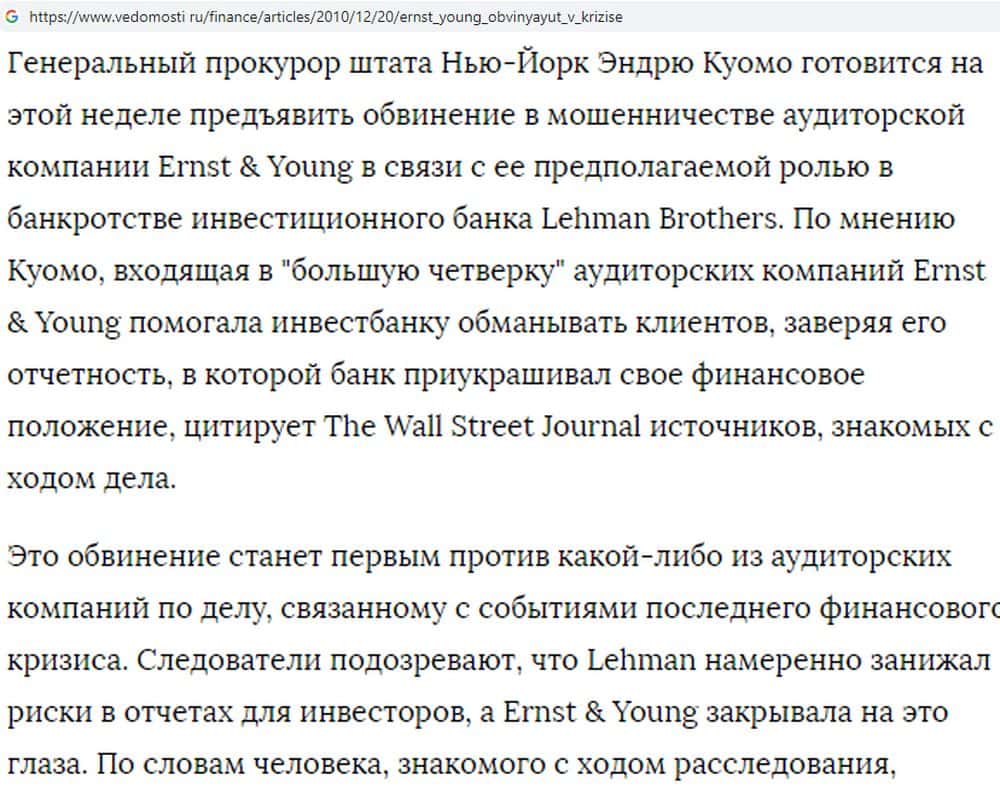 Источники, которые были использованы при написании статьи о мошенниках Эрнст энд Янг