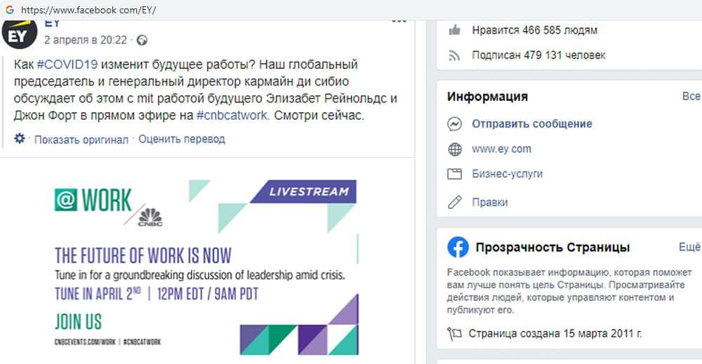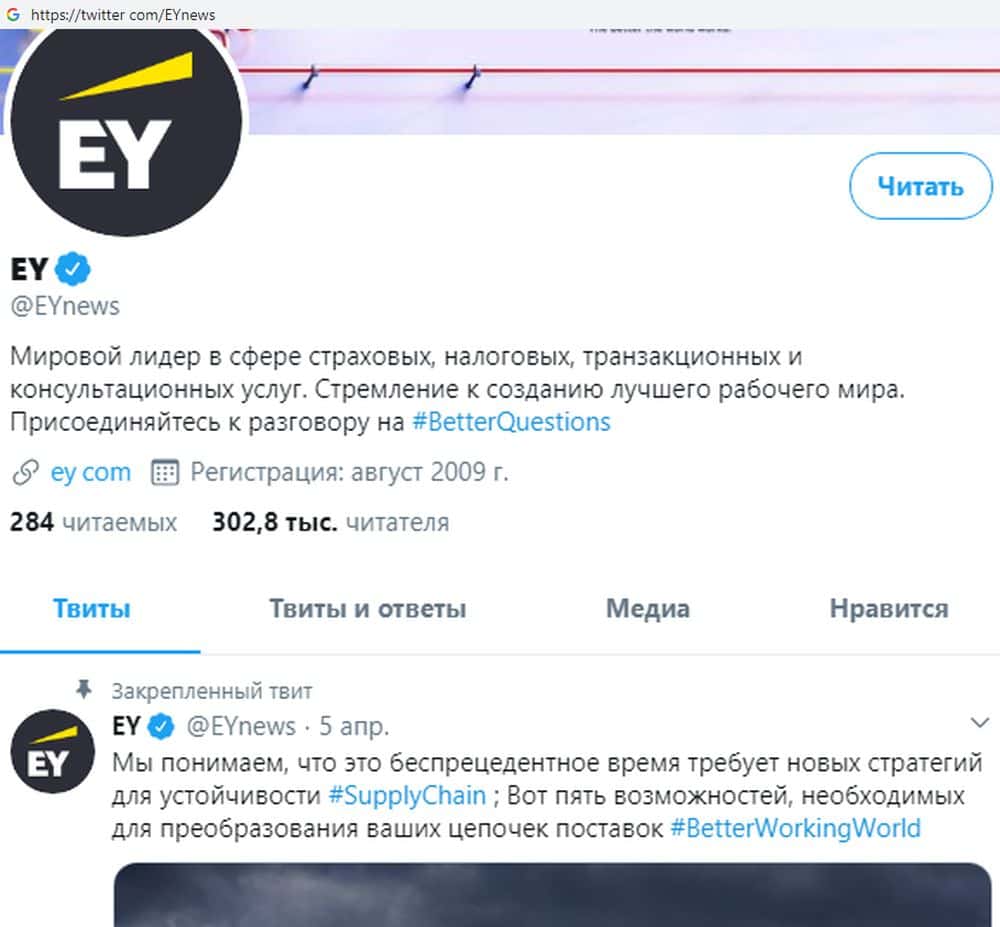 Именно на страничках в соцсетях становится понятно, что жулики Эрнст энд Янг давно забыли, что значит быть аудитором и что они имели к этому какое-то отношение. Тут они позиционируют себя как мирового лидера в сфере консультационных, налоговых и транзакционных услуг. Имеются в виду советы по воровству и отмыванию денег.