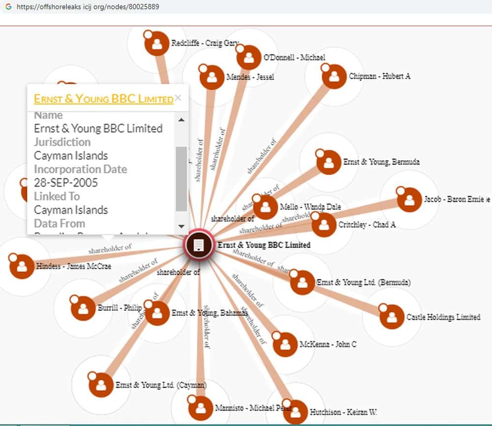 Но истинное назначение всей злодейской схемы Эрнст энд Янг - отмывание наворованных денег и перевод их в безопасные оффшоры через дочерние подставные конторы с соответствующей регистрацией. Согласно данным ресурса offshoreleaks icij org воры Ernst & Young является крупнейшим проводником и покровителем оффшорных утечек.