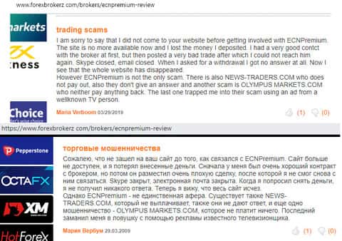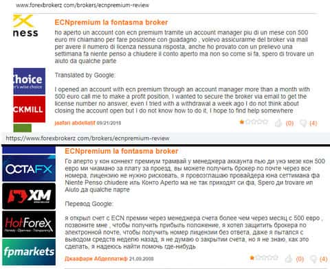 Афера произошла с одним клиентом, который посчитал, что сможет заработать работая с брокерской конторой ECN Premium. Жулики выманили 500 евро, и только после этого у человека включилась голова, что нужно проверить лицензию. Контора ЕСН Премиум ничего не ответила и эти деньги никто не отдал.