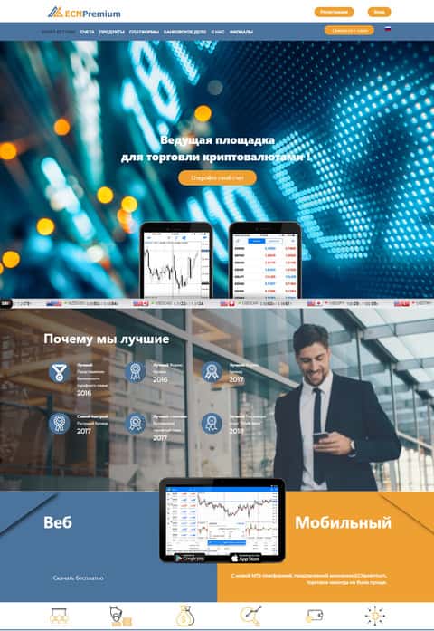 Веб-ресурс дилинговой конторы ЕСН Премиум просто напичкан различными кнопками, так как аферисты используют его для завлекухи новых лохов к себе в капкан. Ресурс рассчитан на обычных интернет-пользователей, которые ведутся на лозунги и красочные картинки. Опытный трейдер на такое не поведется.