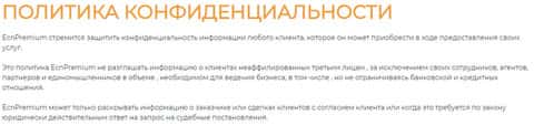 Политика конфиденциальности форекс-лохотрона ЕСН Премиум