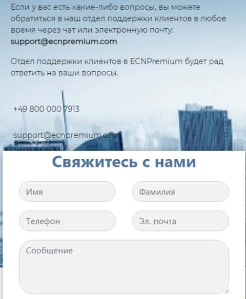 Для того, чтобы общаться со своими жертвами до момента развода, дилинговая контора ECN Premium использует несколько каналов для связи, а именно электронную почту и телефон. Для гурманов есть даже адреса как самой кухни, так и администрации сайта. А вот собственно и сами данные: