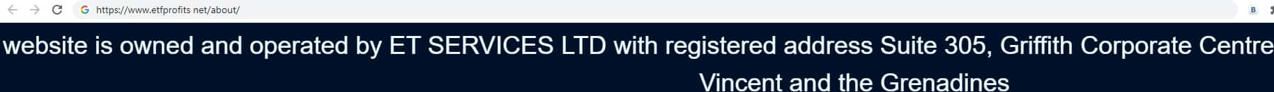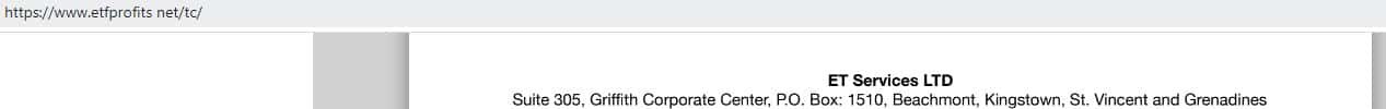 Компания ЕТФ Профитс является обычным лохотроном, поэтому они зарегистрированы, как и многие мошенники, на островах Сент-Винсенты и Гренадины.