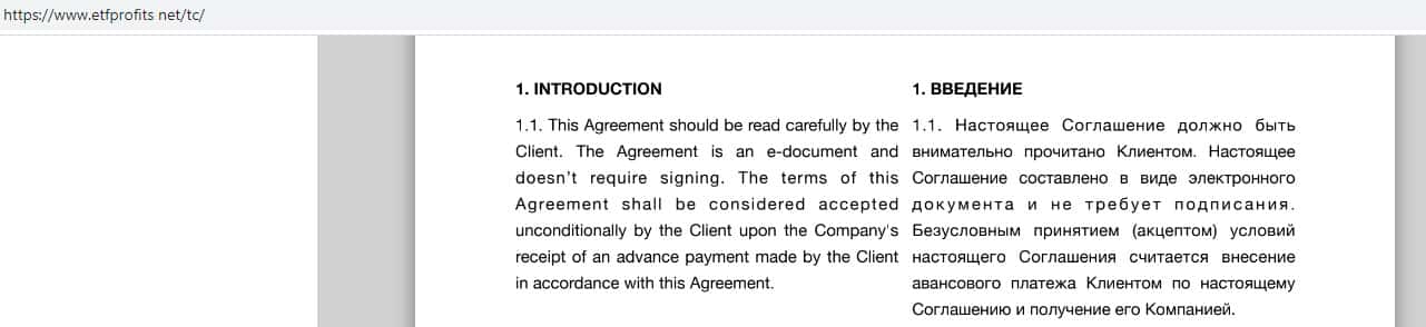 - Типичное мошенническое соглашение у жуликов ЕТФ Профитс