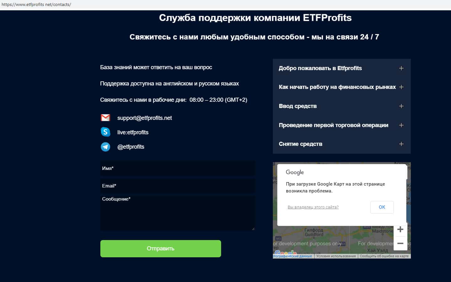 - ЕТФ Профитс почему-то предоставила только анонимные способы для связи с ними
