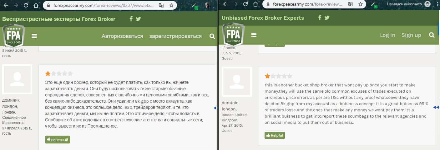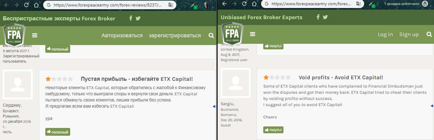 - Еще один отзыв о лохотроне ЕТХ Капитал с портала forexpeacearmy com