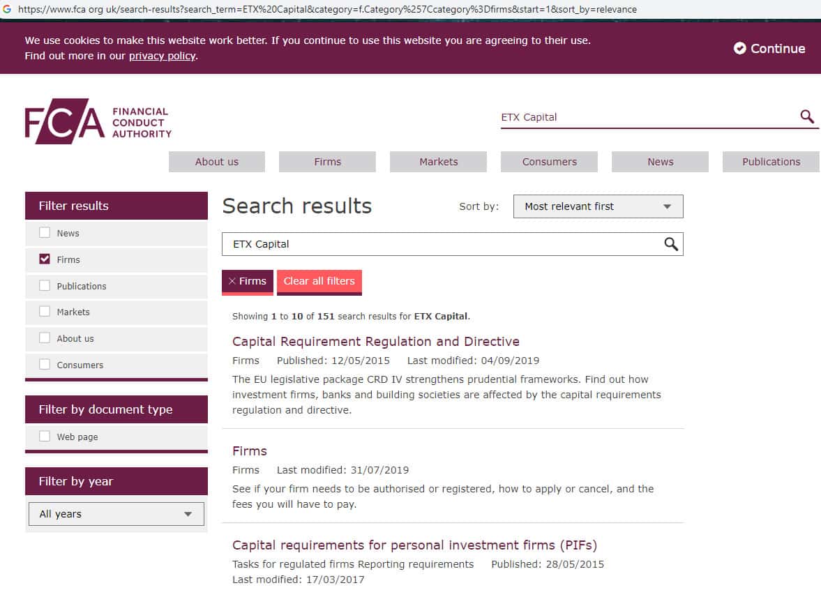 Несмотря на огромное количество лапши со стороны аферистов ETX Capital о своей лицензии или же регулировании мошенники ЕТХ Капитал ничего конкретного не говорят. Ну и как ожидалось поиск шулеров ETX Capital на сайте регулятора не дал никаких конкретных результатов. На изображении, расположенном ниже, вы можете увидеть результаты поиска аферистов ЕТХ Капитал.