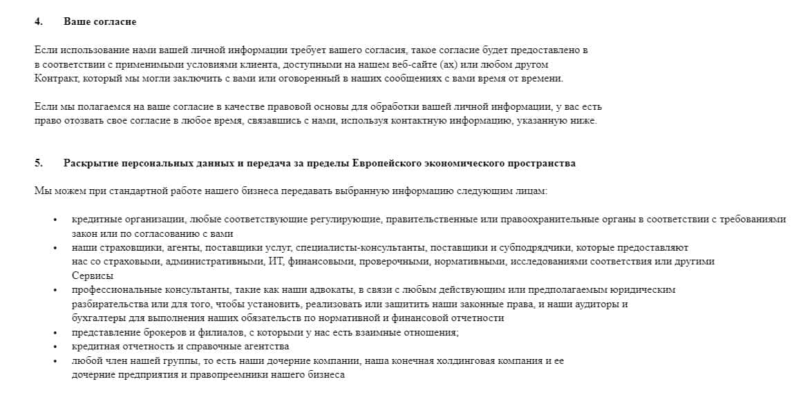 Завершается же политика конфиденциальности у мошенников ETX Capital информацией о том, что пользователь соглашается с данной политикой конфиденциальности, а так же аферисты ЕТХ Капитал оставляют за собой право в любой момент по своему усмотрению передавать личные и персональные данные своих пользователей третьим лицам и не нести за это ответственности.