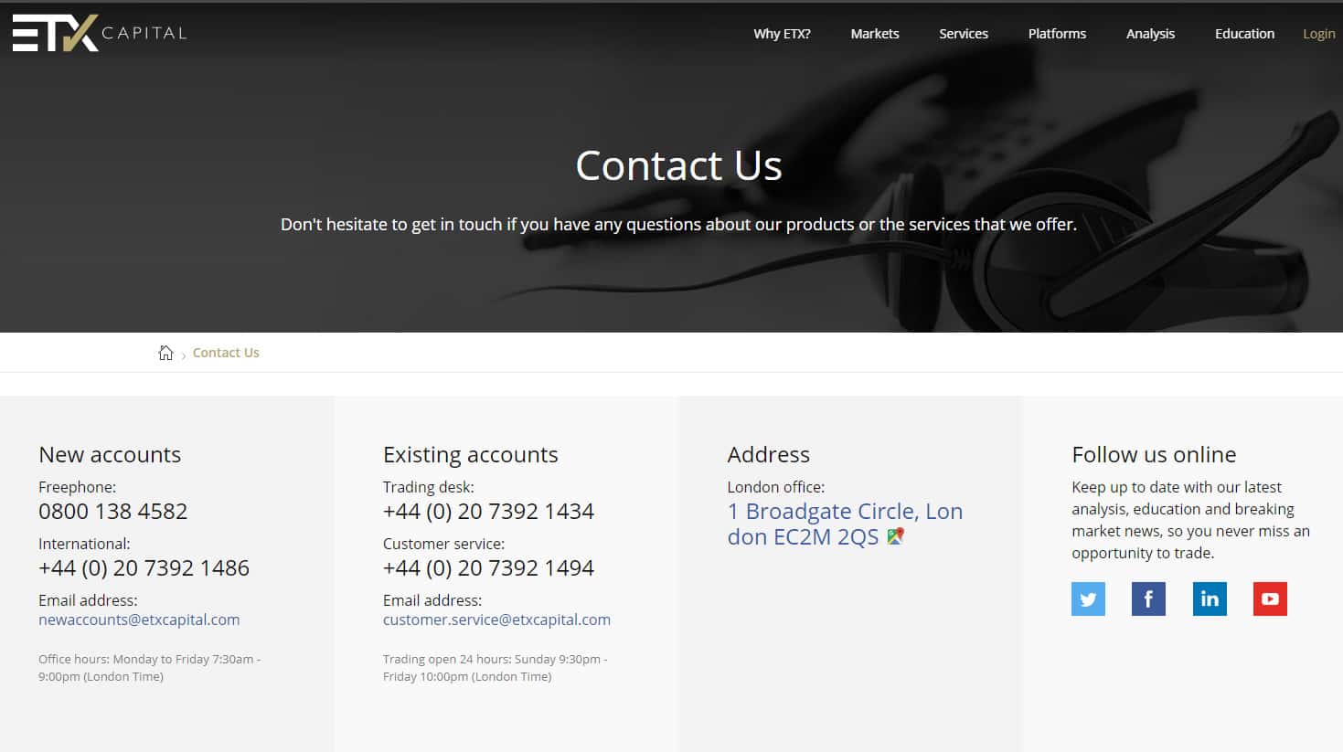 - почта newaccounts@etxcapital com и customer.service@etxcapital com
