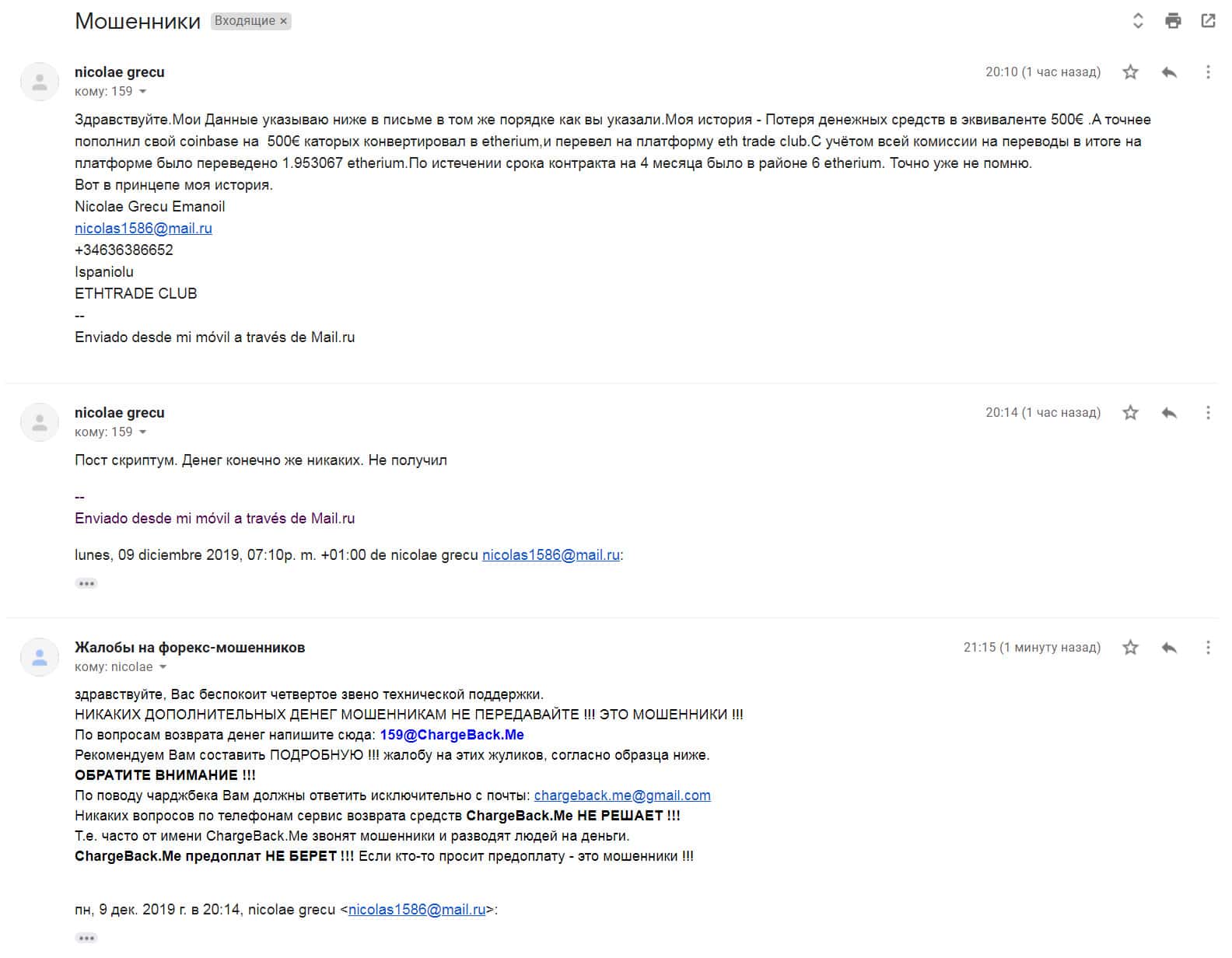 Жалоба на мошенников Ethtrade
