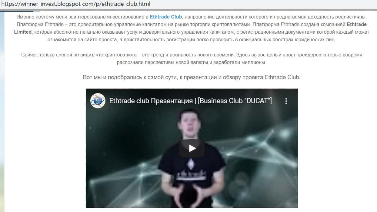 Использованные источники при написании статьи о лохотронщиках Ethtrade