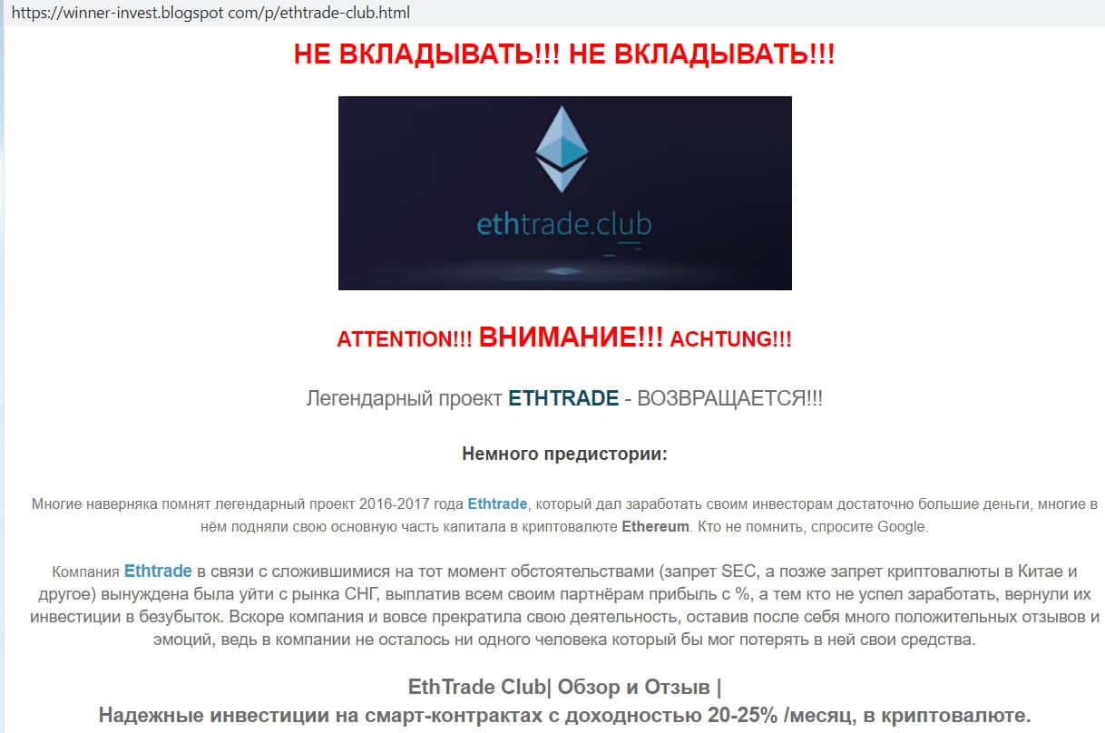 Мошенническая компания Ethtrade уже соскамлена