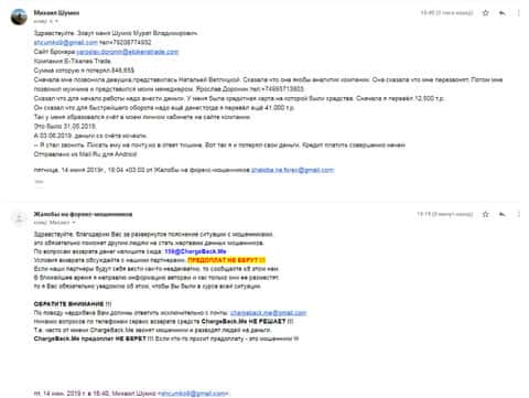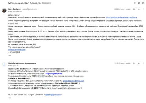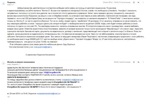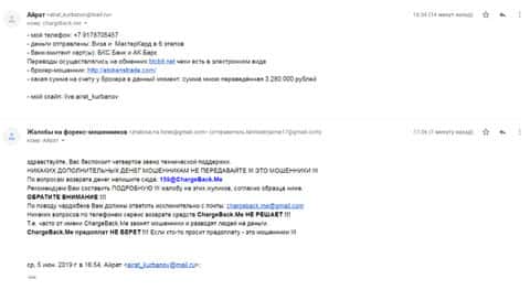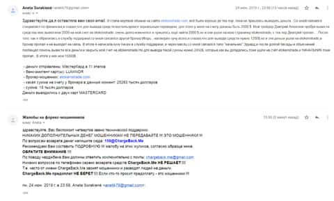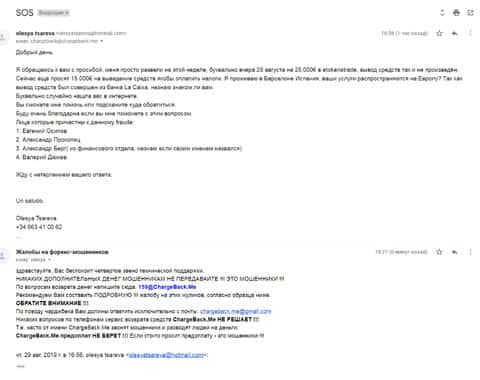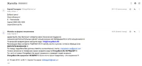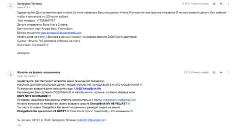 Следующую подробную жалобу прислала одна женщина, которая просит помощи у службы по возврату средств из форекс-лохотронов ChargeBack.Me так как ее опрокинули на сумму практически 700 000 рублей. Цифра довольно огромная, поэтому возврат денег в короткие сроки это вопрос жизни и смерти.