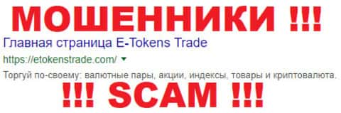 Мошенническая кухня Е-Токенс Трейд нерегулируемый брокер