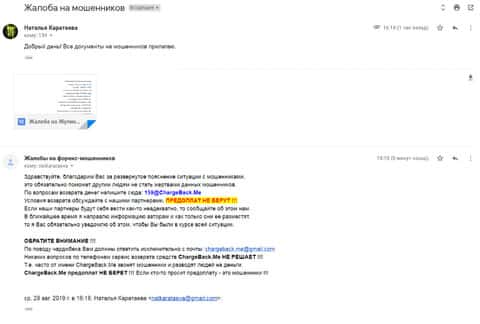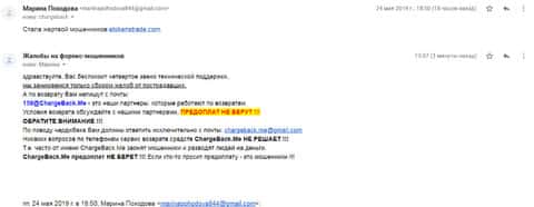 Автор следующего информационного материала сообщила о том, что ее обворовали в данной scam-организации на немалые деньги, а точнее - на сумму равную 45 000 американских долларов. Теперь, для того чтобы попробовать вернуть утраченное, клиенту нужно обращаться в сервис ChargeBack.Me за помощью.