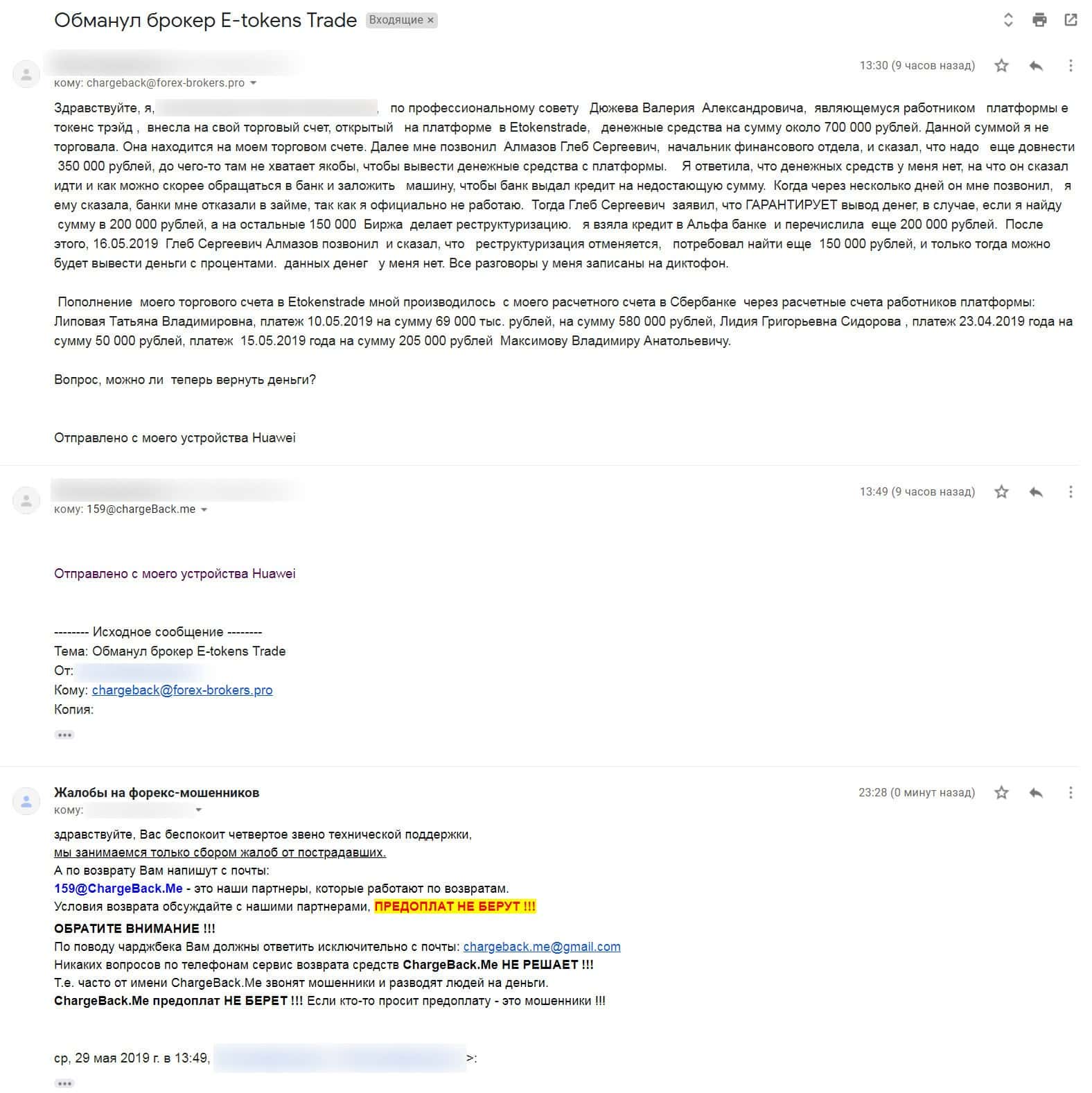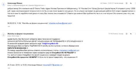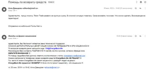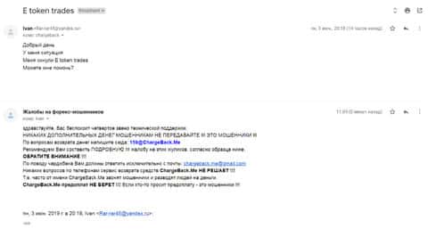 Автор последующей жалобы также может обратиться за помощью в специализированную интернет-службу ChargeBack.Me где возможно ему посодействуют в возврате утраченных денежных средств из мошеннической онлайн-конторы Э-Токенс Трейд.