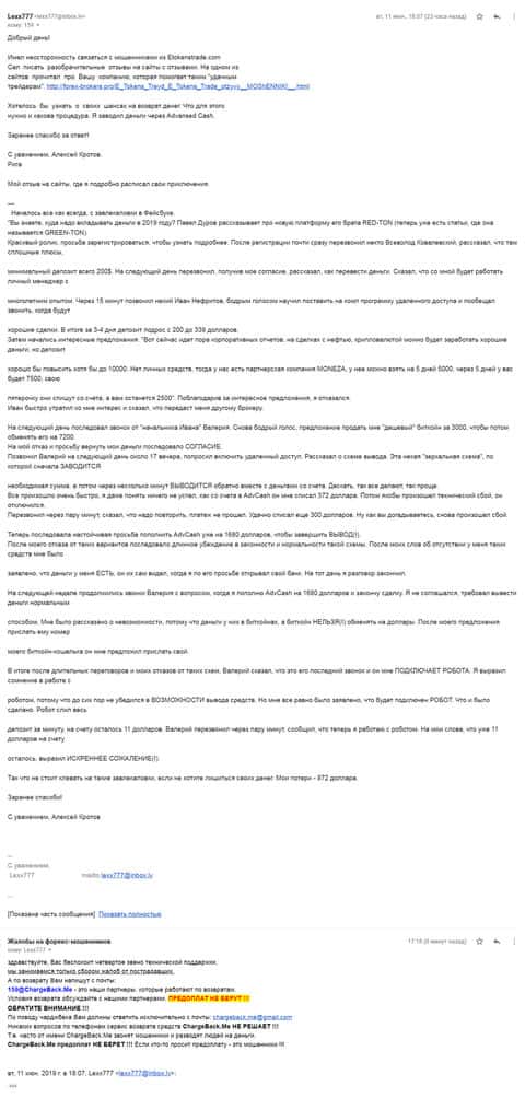 - Еще одна жалоба на шарлатанов ЕтокенсТрейд