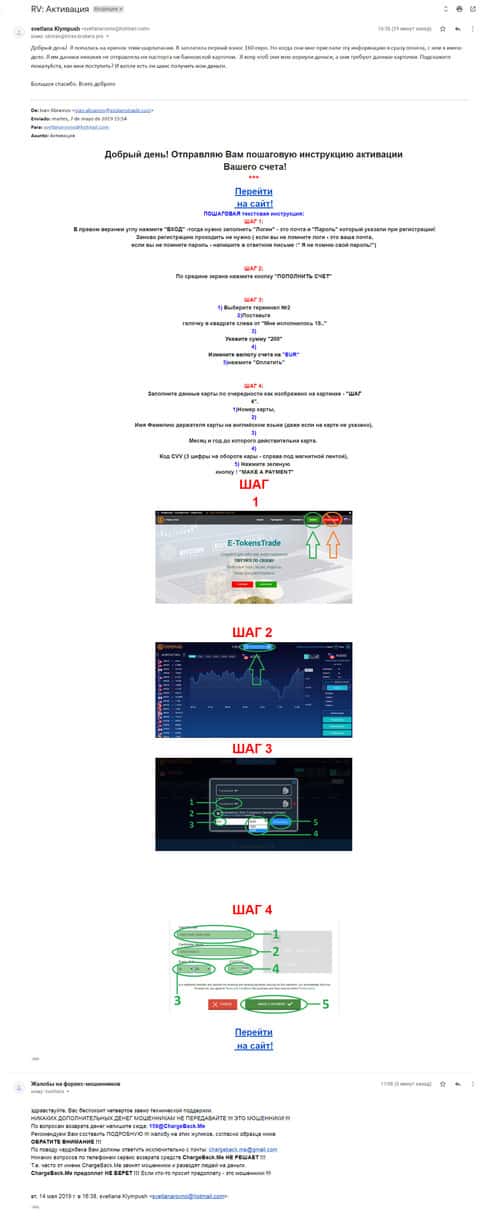 Подробная жалоба на мошенников Е-Токенс Трейд - утрачено 15 000 долларов