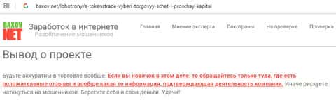 Baxov Net заявляет, что Е-Токенс Трейд - МОШЕННИКИ