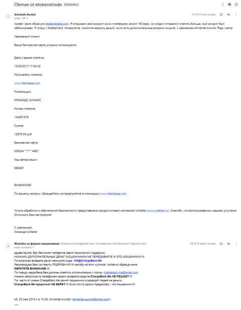 - Аферисты Э-Токенс Трейд облапошили еще одного клиента на несколько сотен евро