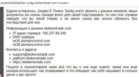 Еще один интернет-ресурс остерегает пользователей от шараги E-Tokens Trade