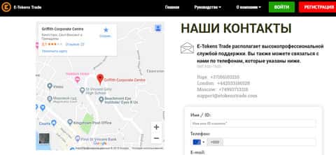 Контактная информация форекс-шараги Е-Токенс Трейд
