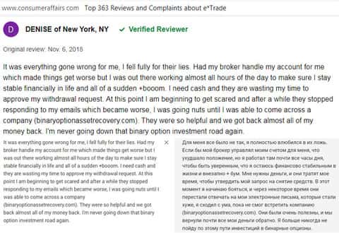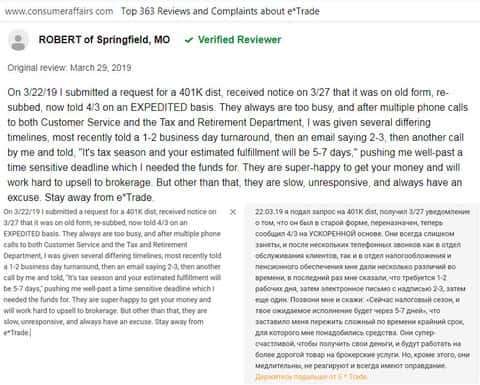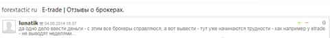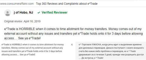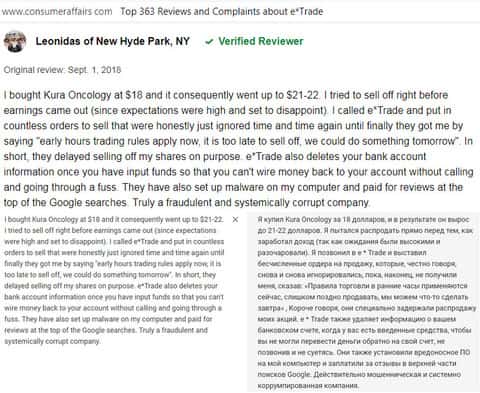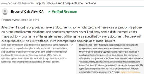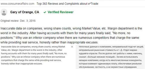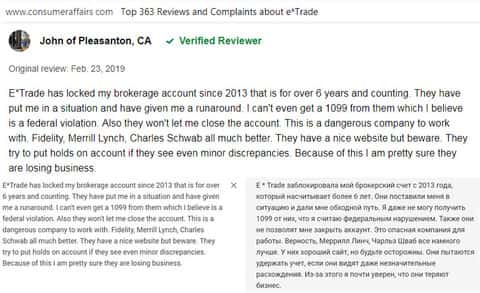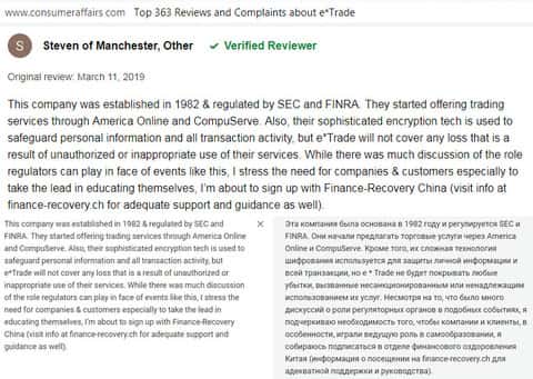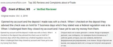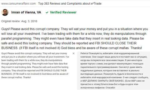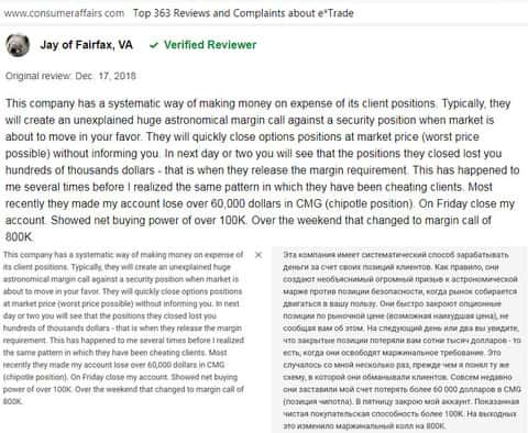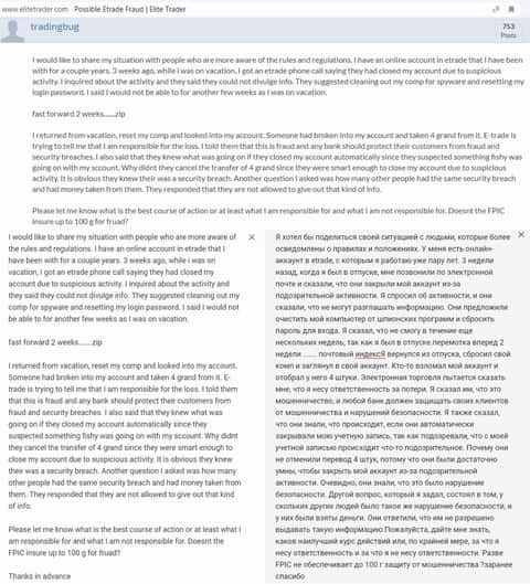 Отзыв русскоязычного пользователя о разводилах Е трейд