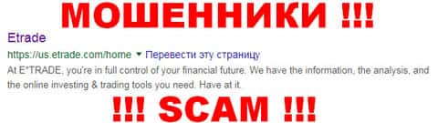 - Веб-сайт мошенников Е трейд