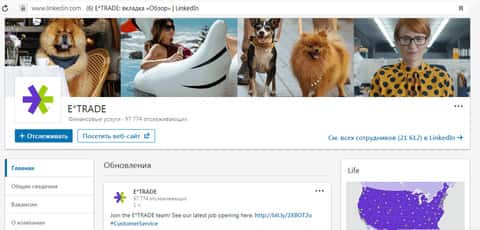 Также у жуликов Е трейд имеется страничка в популярной рабочей соц. сети под названием LinkedIn. Она была создана для связи работодателей с работниками. К сожалению, зная истинные мнения людей о разводилах E-trade, нас уже не умиляют красивые собачки, которыми аферюги пытаются отвлечь внимание от истинной проблемы – их непрофессионализма.
