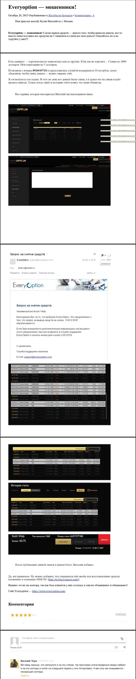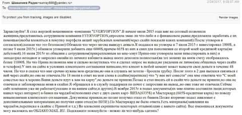Статья заявителя о факте разводилова на деньги со стороны ЭверОпцион