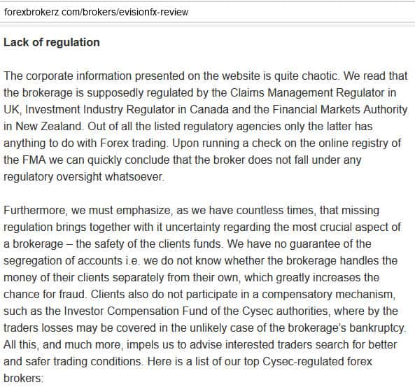 EvisionFX не имеет нормального регулирования, как другие порядочные конторы. Новая Зеландия хоть и не Карибы, но все же ее нормативно-правовая база для работы на финансовых рынках довольно слабенькая. Именно этим и пользуются многие жулики, чтобы показать, что они якобы работают хоть в каком-то правовом поле. На самом деле это тоже обман.