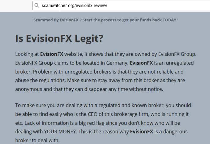- Псевдоброкер EvisionFX не попадает ни под один нормативный контроль