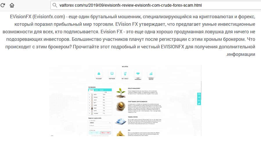- EvisionFX - мошеннический брокер с красивым дизайном