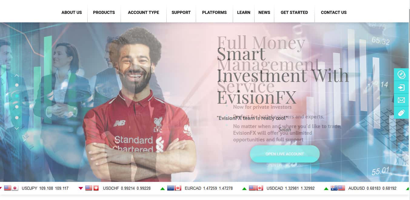 Мошенники EvisionFX довольно плотно приложились в создание сайта. Видно, что в него были вложены деньги. Сам дизайн об этом говорит. Это видно сразу, как вы на него попадаете, он довольно привлекательный. Мошенники для такой конторы работают уже на данный момент довольно долго и видимо еще не выработали все, что хотели, поэтому в имидж деньги и вкладывали.
