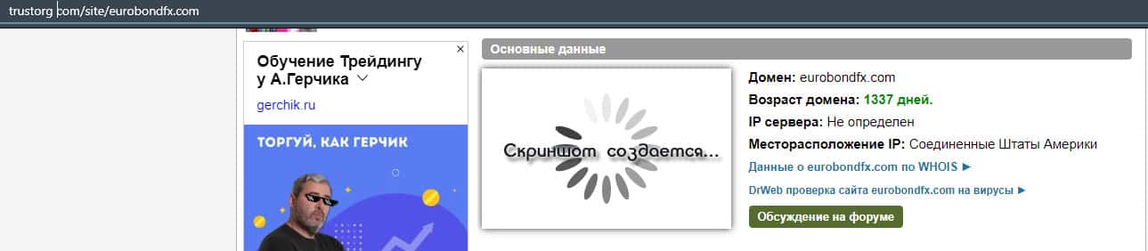 Далее представлен скриншот официального сайта лохотрона EuroBondFX, который до этого работал и привлекал внимание потенциальных жертв Форекс.