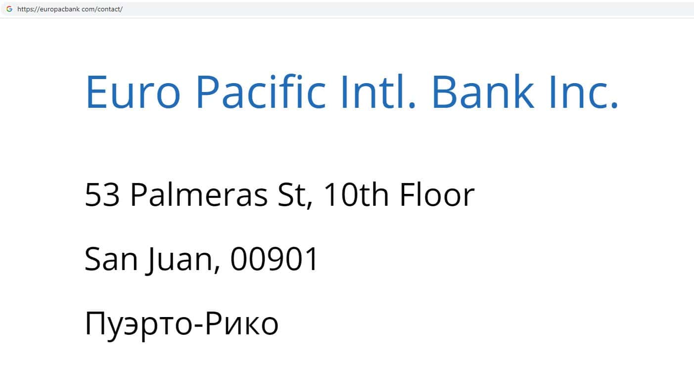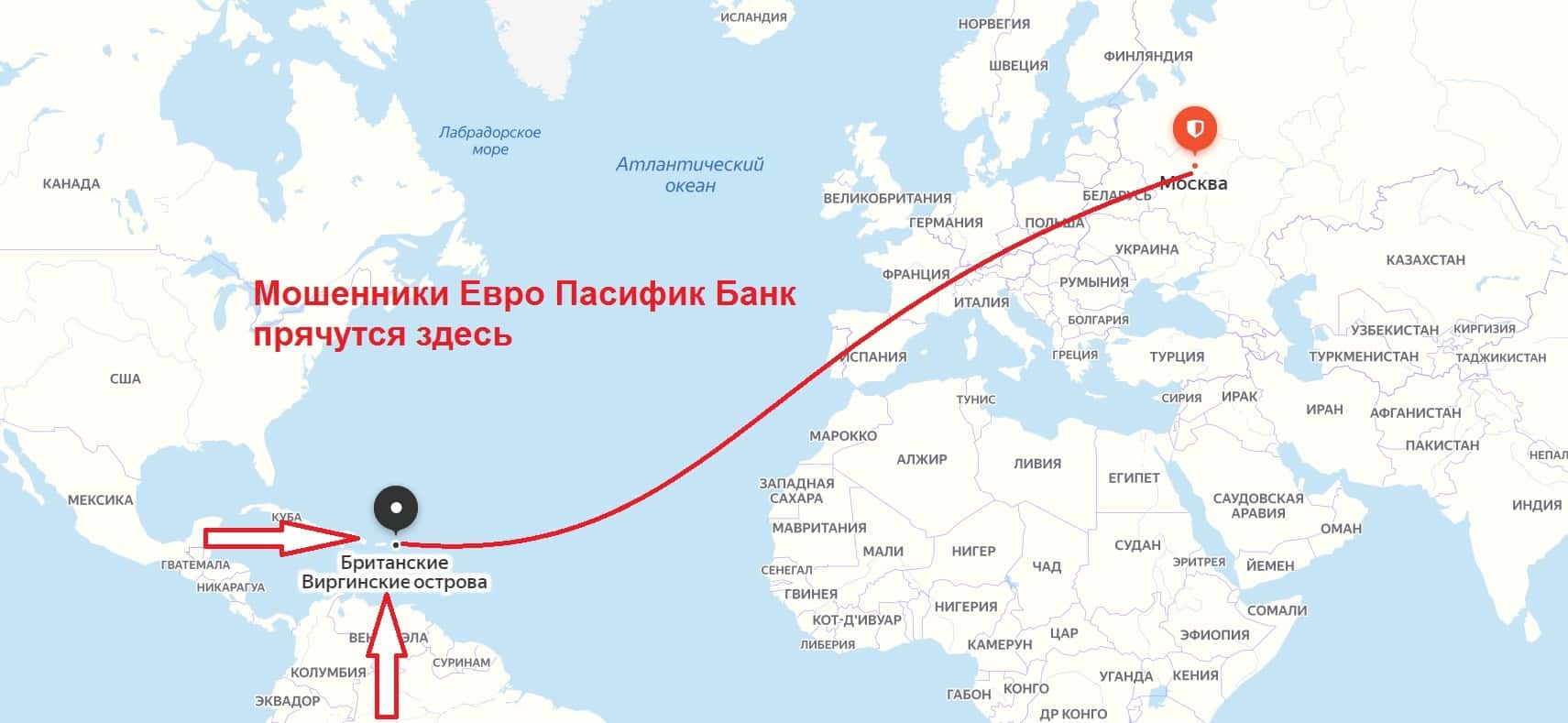 На сайте мошеннической организации Euro Pacific Bank указано, что юридическое лицо, которому принадлежит бренд, зарегистрировано на Британских Виргинских островах.