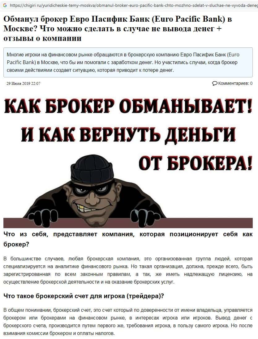 - Информация о псевдо-брокерской организации Евро Пасифик Банк