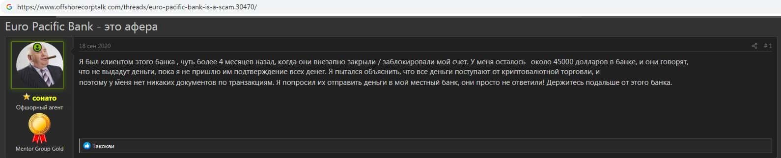 Euro Pacific Bank - обзоры жуликов на других интернет-порталах
