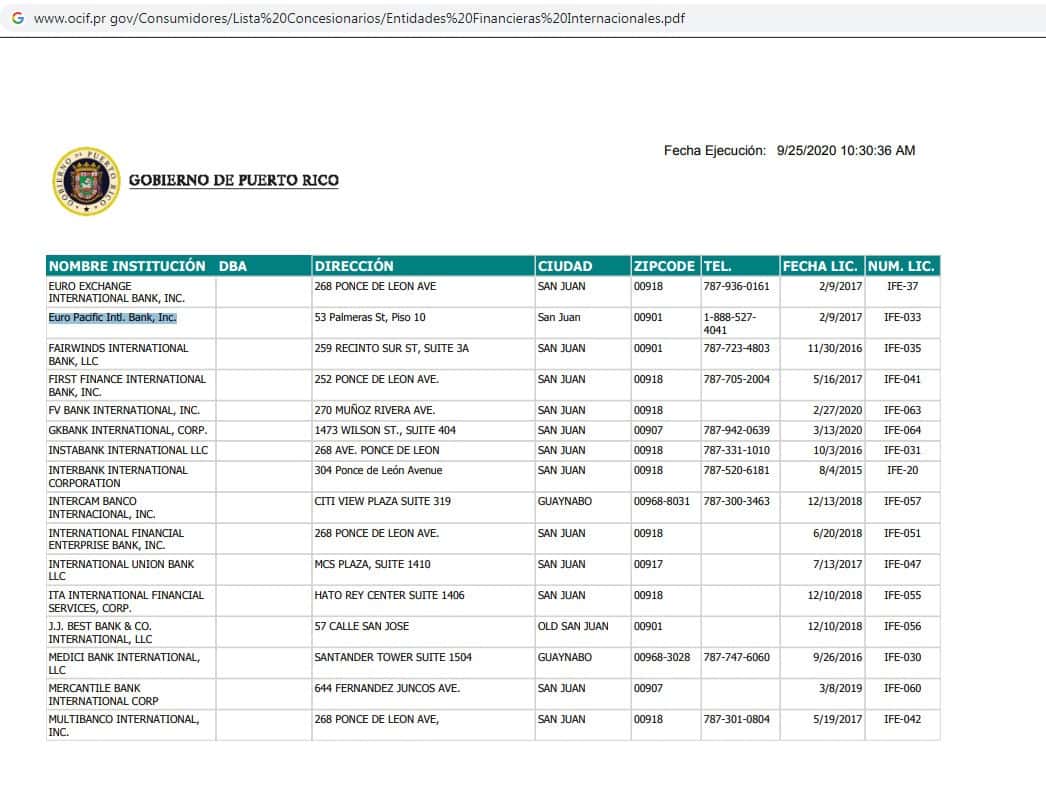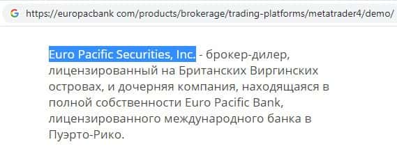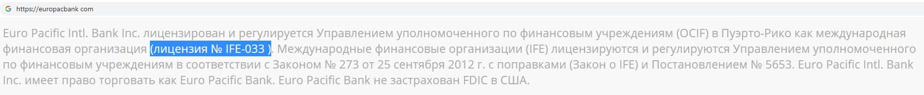 - Информация о лицензии скам-организации Euro Pacific Bank