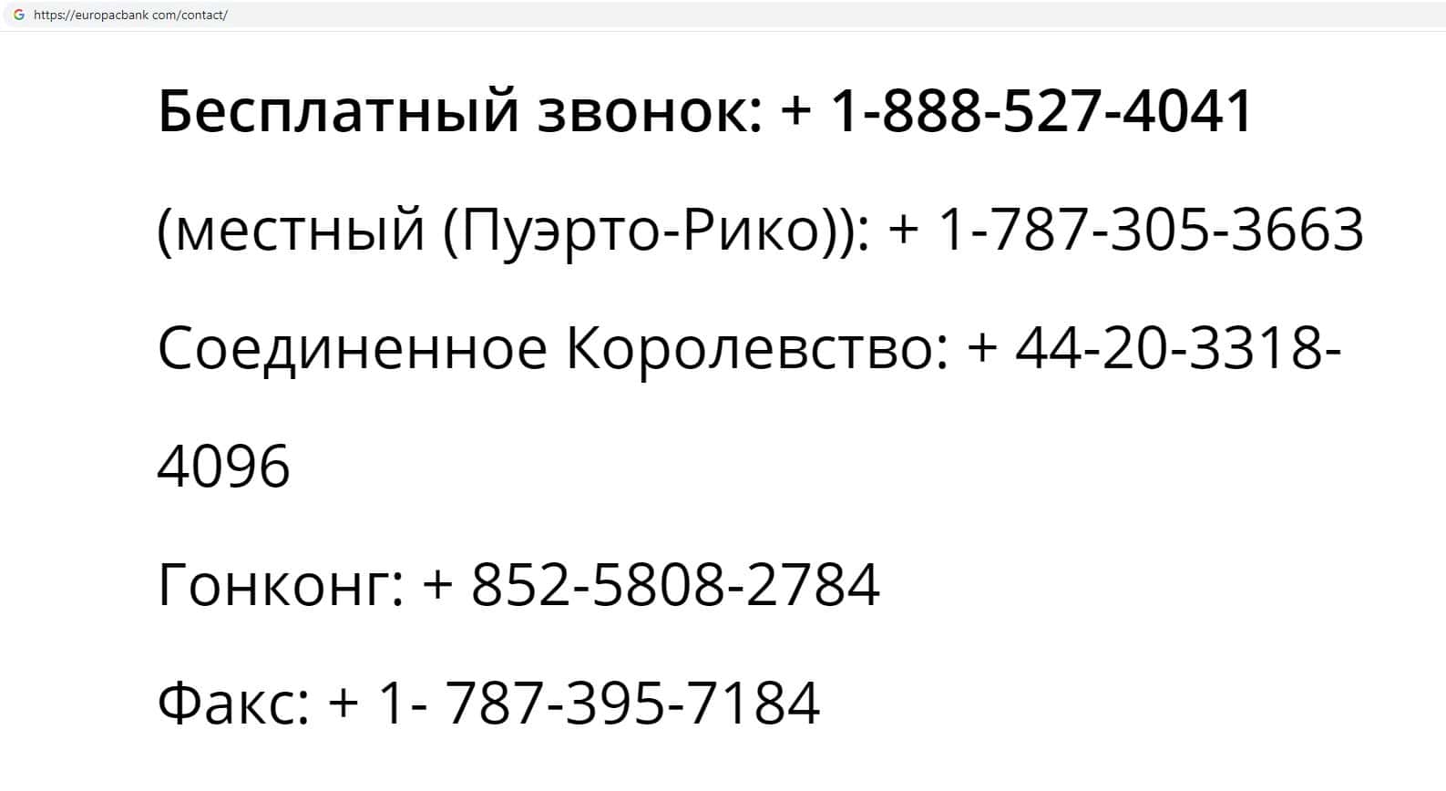 Шулера Евро Пасифик Банк на своем дырявом сайте указали несколько номеров контактного телефона, с которых навязчиво названивают потенциальным жертвам:
