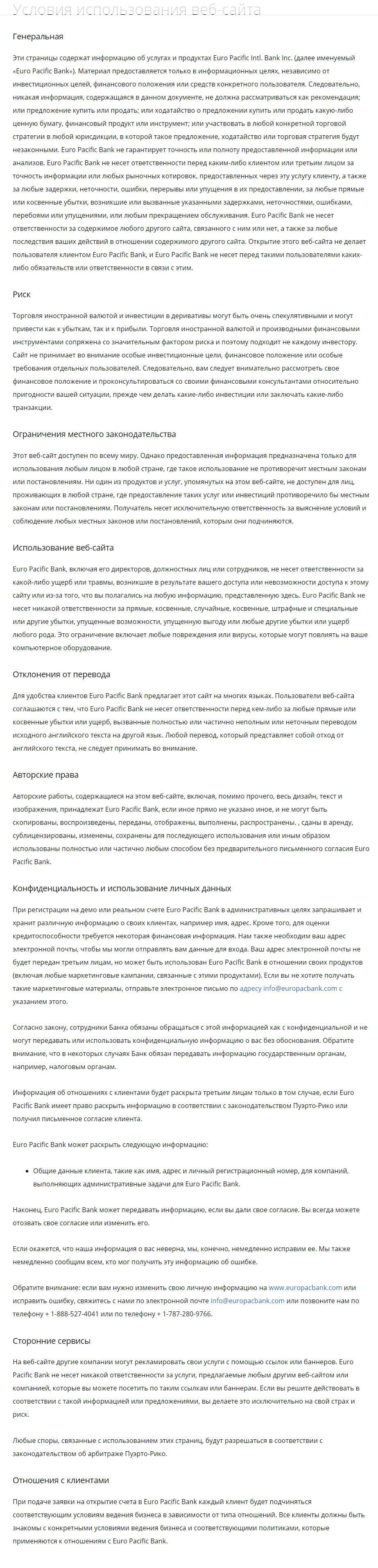 Клиентское соглашение мошеннической организации Euro Pacific Bank