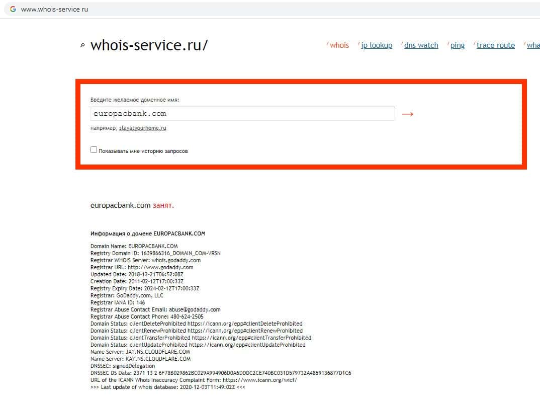 - Данные о владельце домена Евро Пасифик Банк отсутствуют
