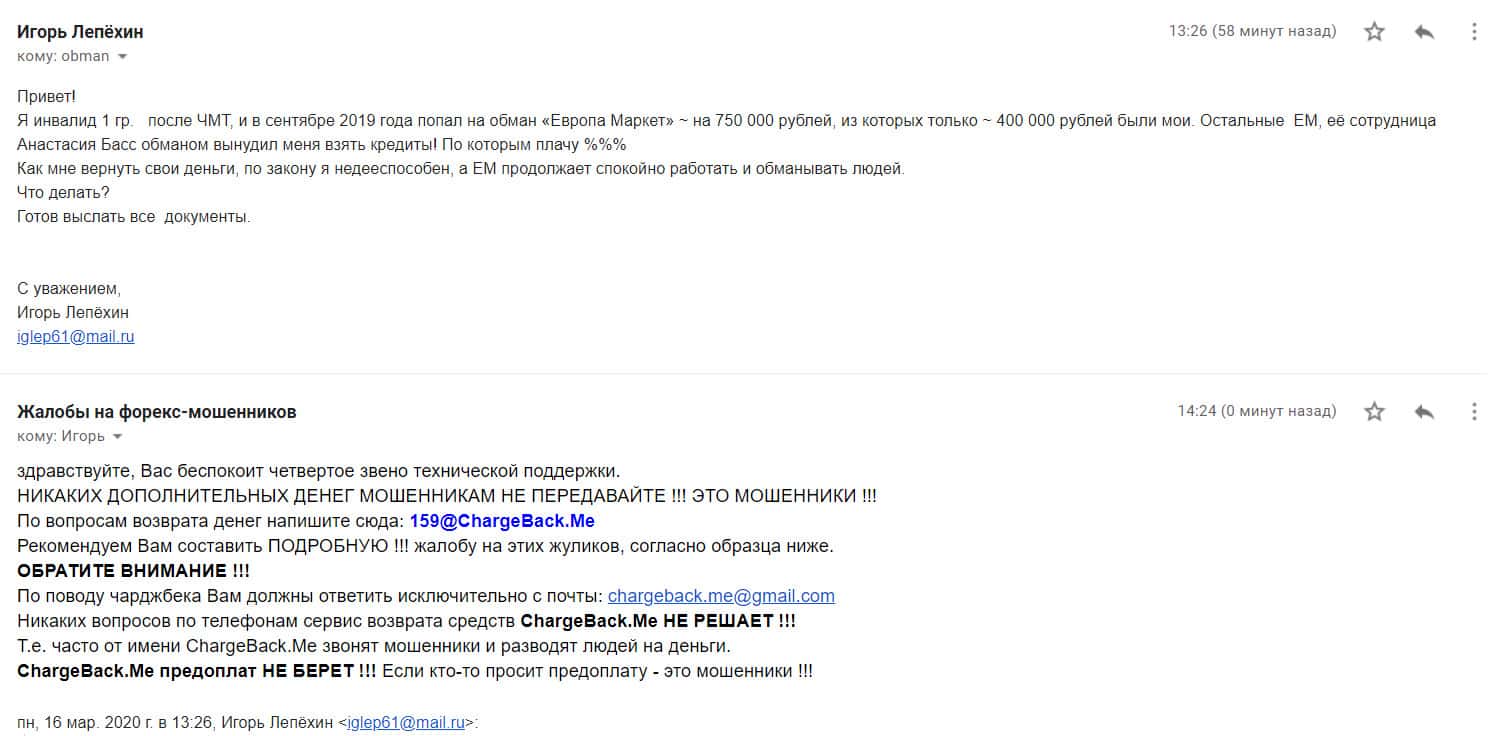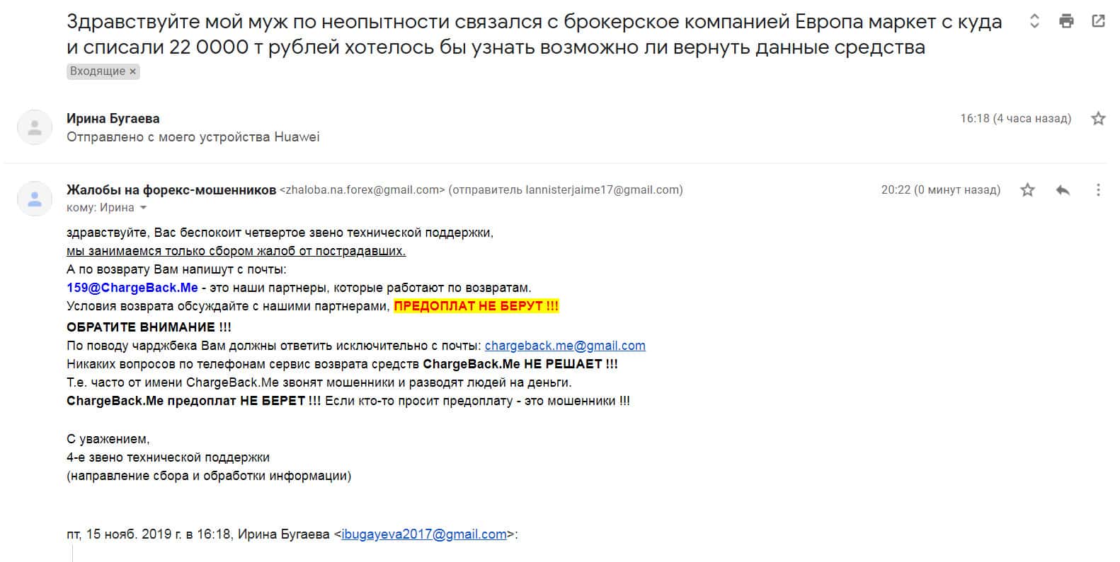 - Жалоба на Европа Маркетс от очередного пострадавшего клиента