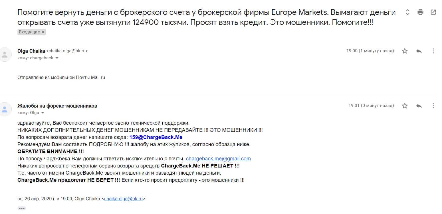 - Мошенники Europe Markets кинули клиента на 124 900 рублей