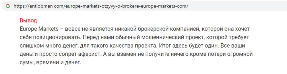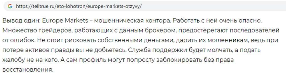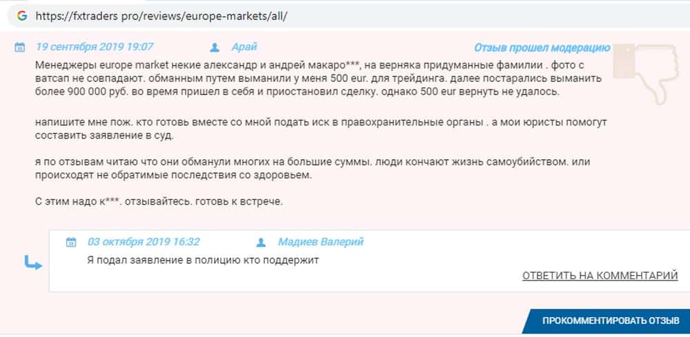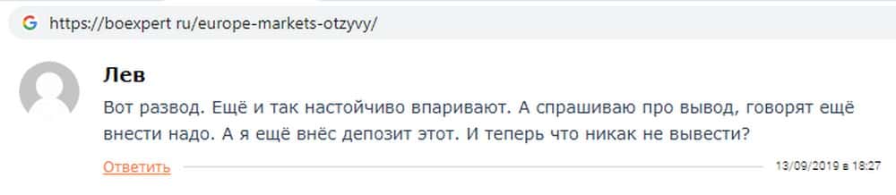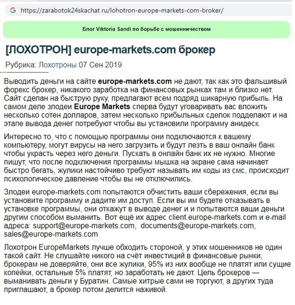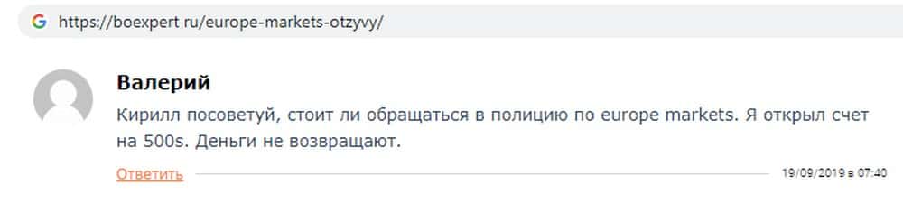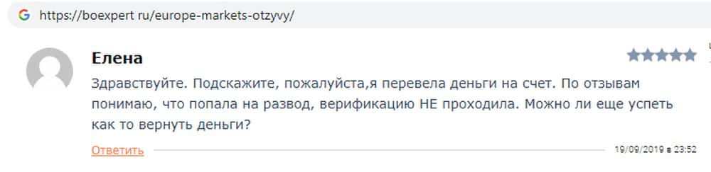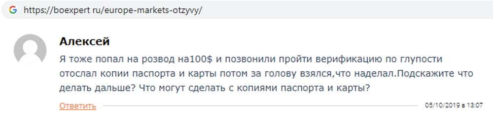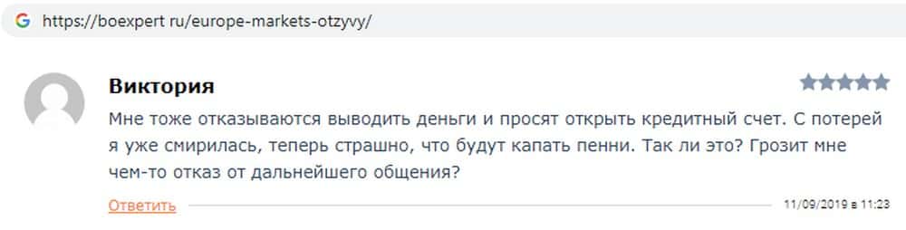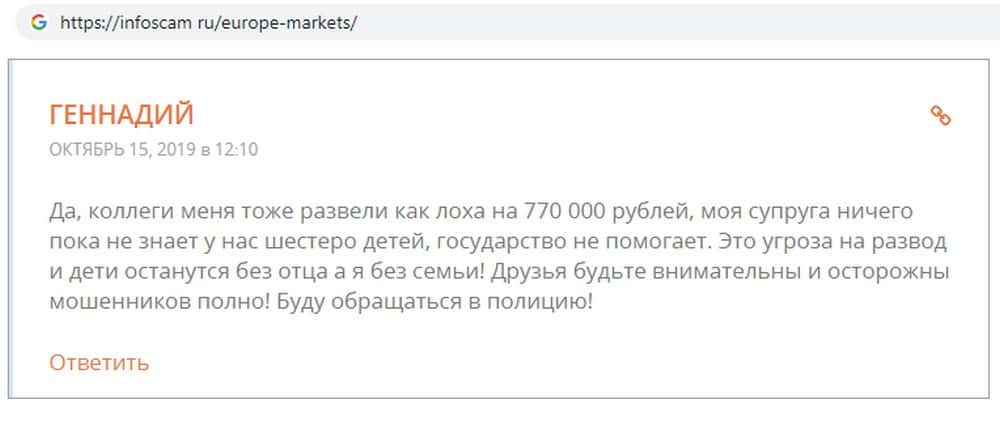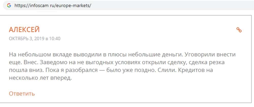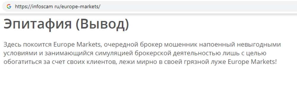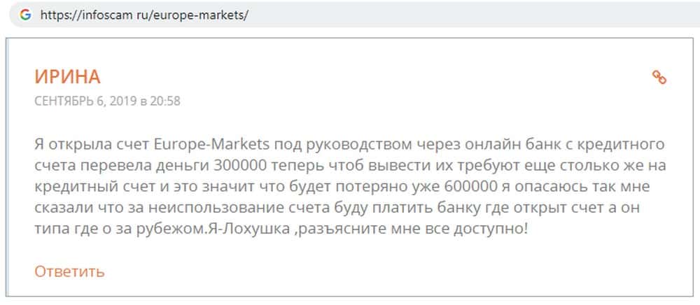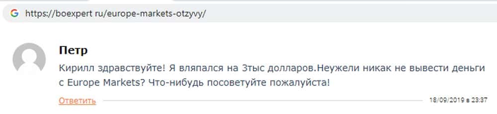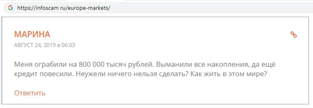 - Одна из многих жертв EuropeMarkets оставила печальный отзыв