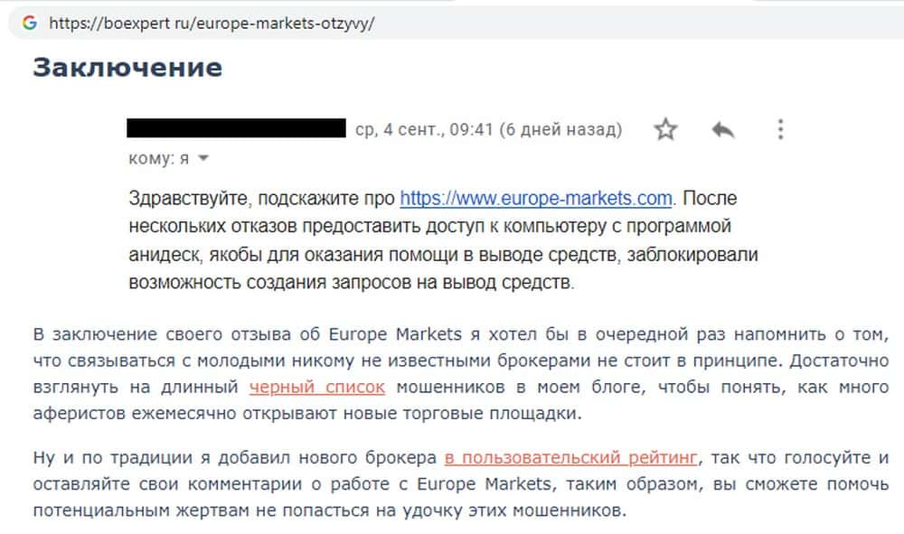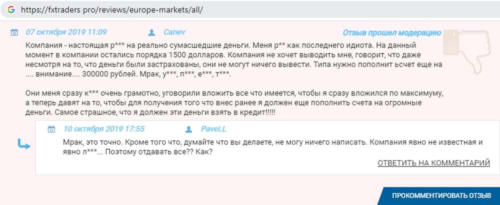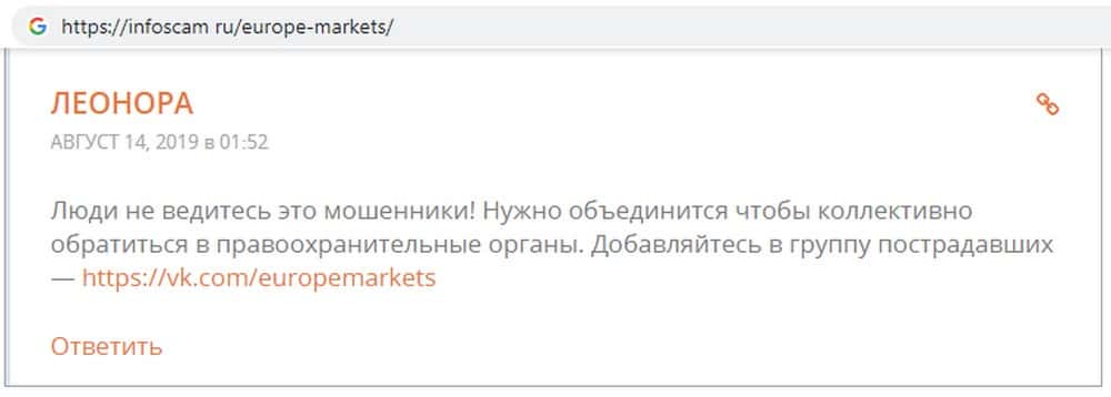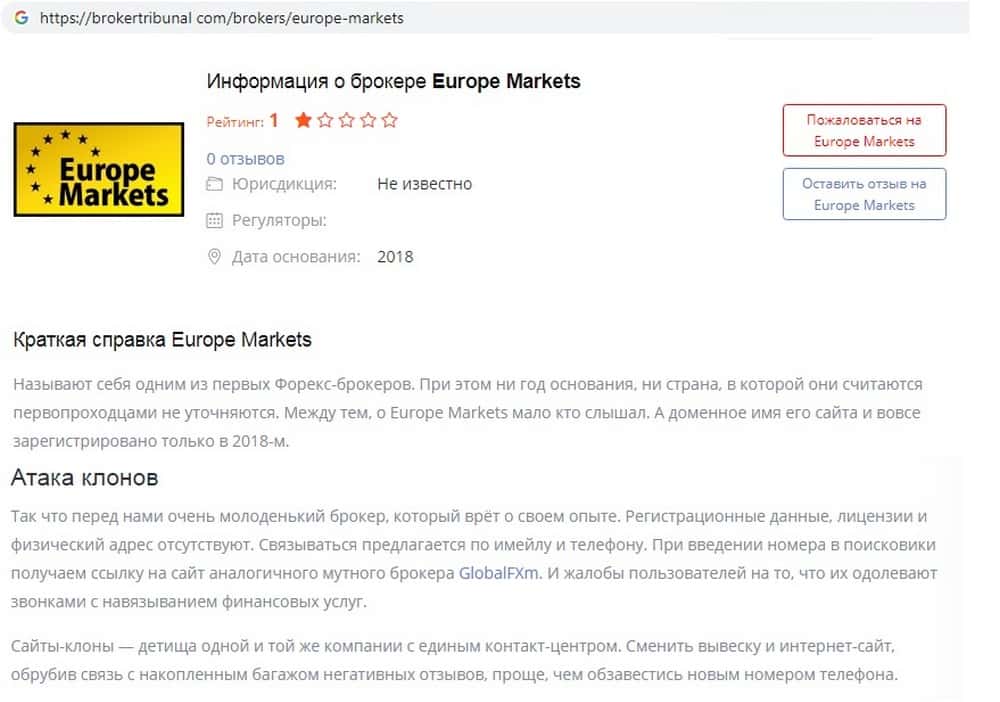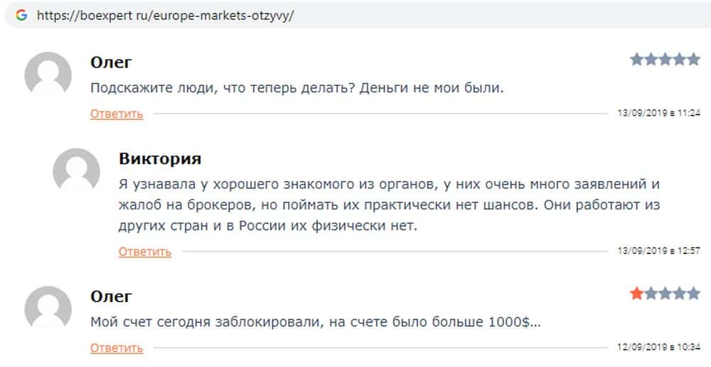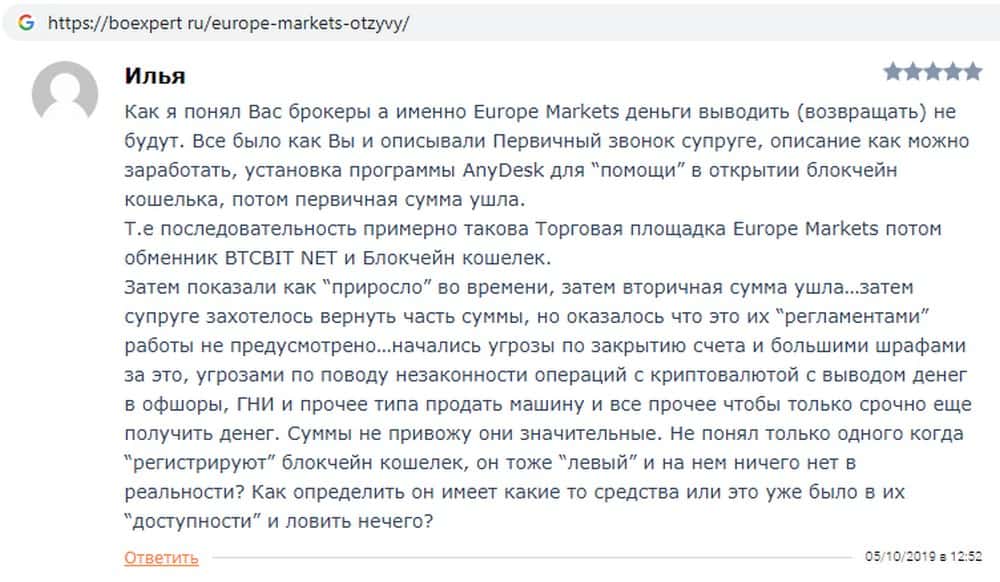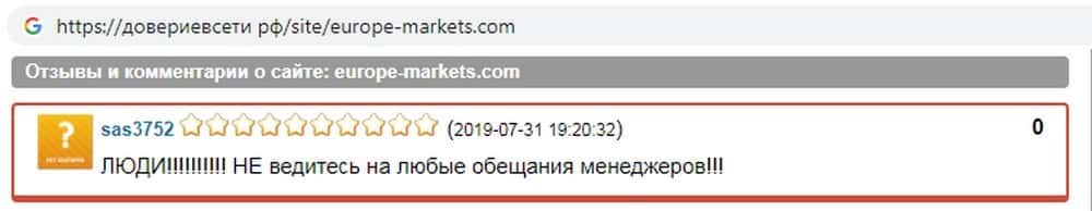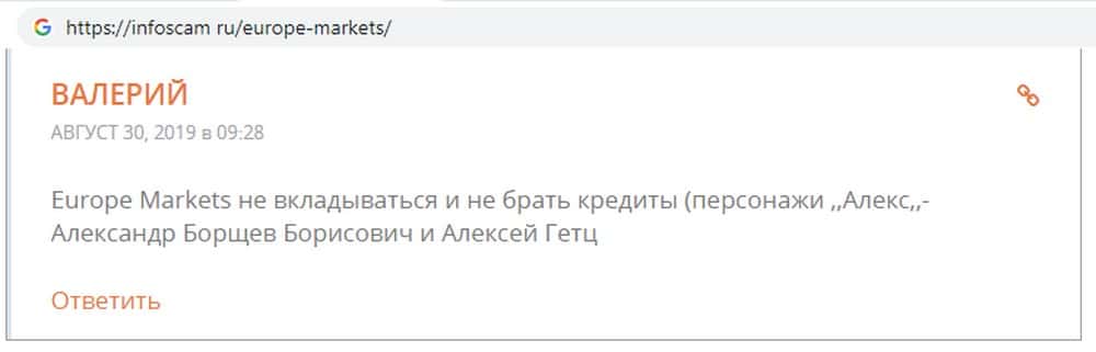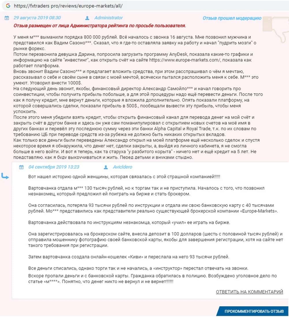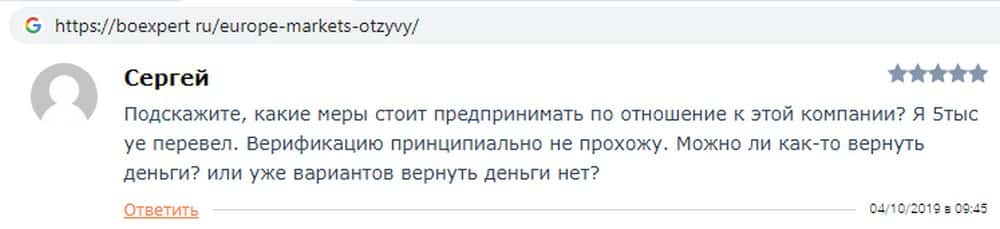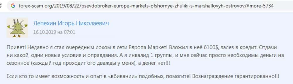 - Одна из многих жертв EuropeMarkets оставила печальный отзыв