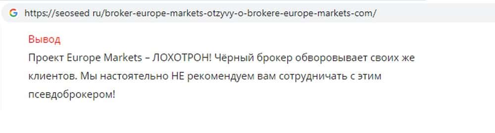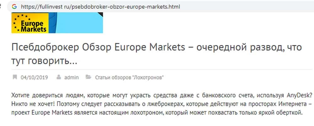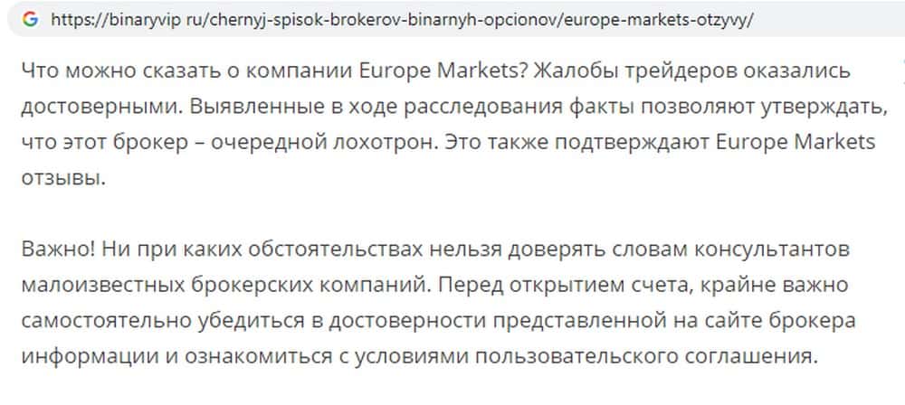 Нельзя доверять отморозкам и EuropeMarkets по мнению специалистов