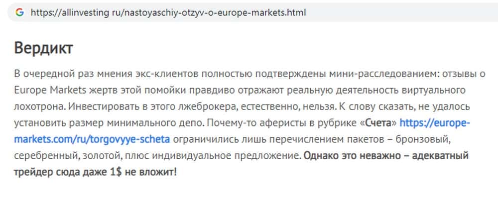 - Вердикт о черном форекс-брокере Европа Маркетс